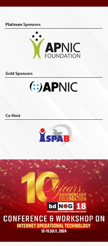 Panelists : Sumon Ahmed Sabir (APNIC EC), Md. Mahbubul Alam Rafel (Prime Bank PLC), Suman Saha(bdNOG EC, Moderator) Rakibul Hassan,CTO,Link3 |